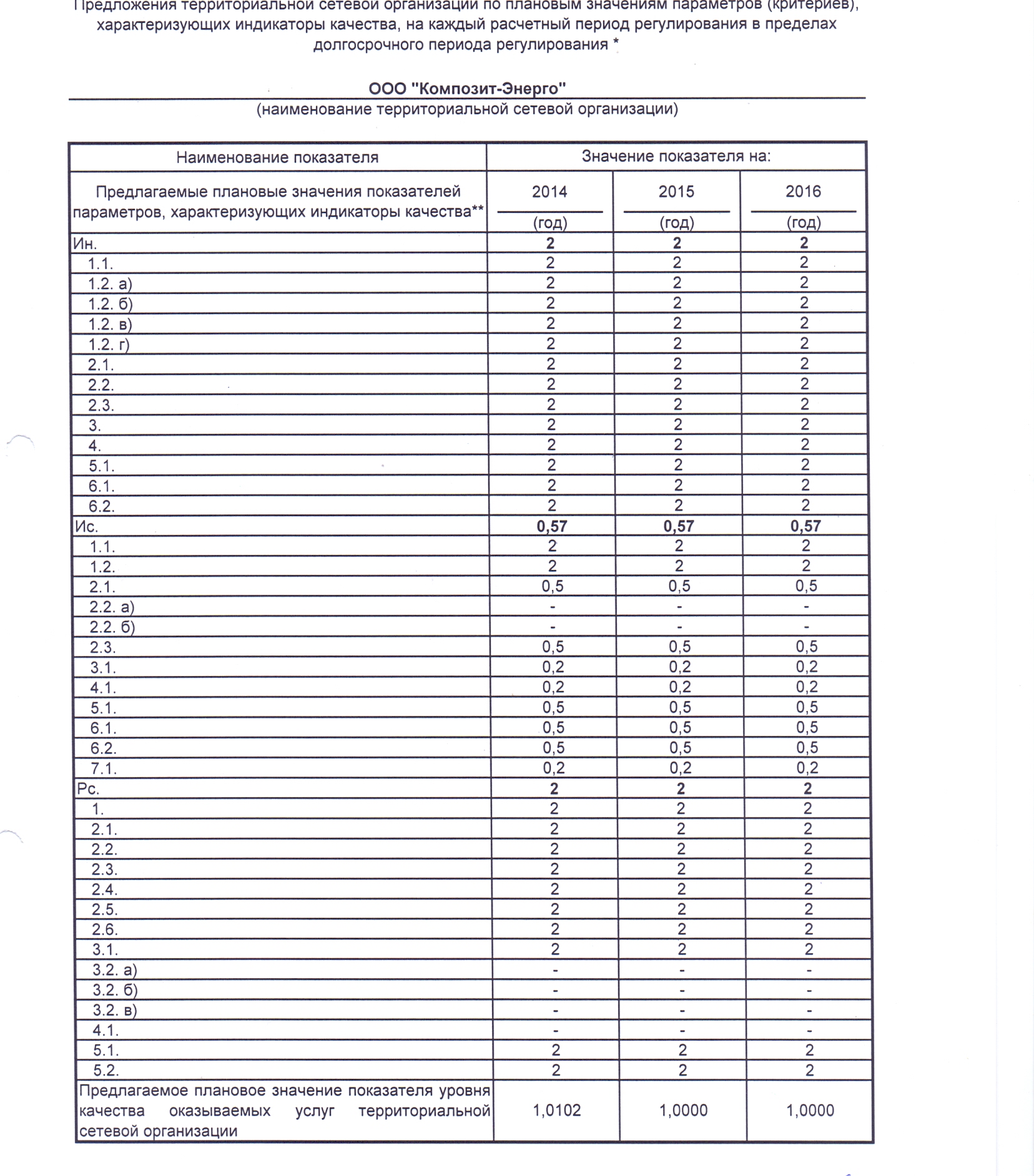 8.Предложения ТСО по плановым значениям параметров, характеризующих индикаторы качества